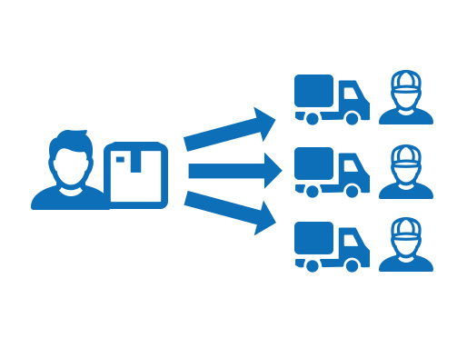他のマッチングサイトはトラックサイズ・運送行程・運賃の3種類をマッチングしていますが、キャリーオンはトラックサイズ・運送行程の2種類をマッチングし、当社が設定した距離に応じた運賃で運用します。